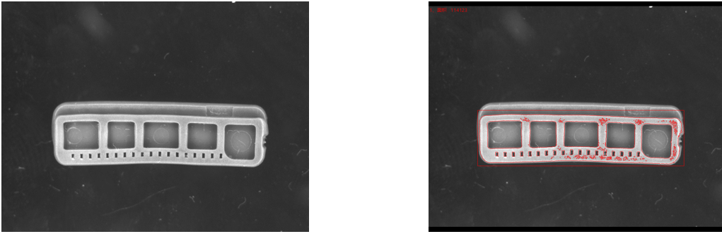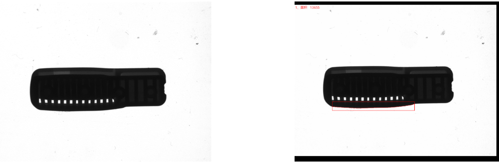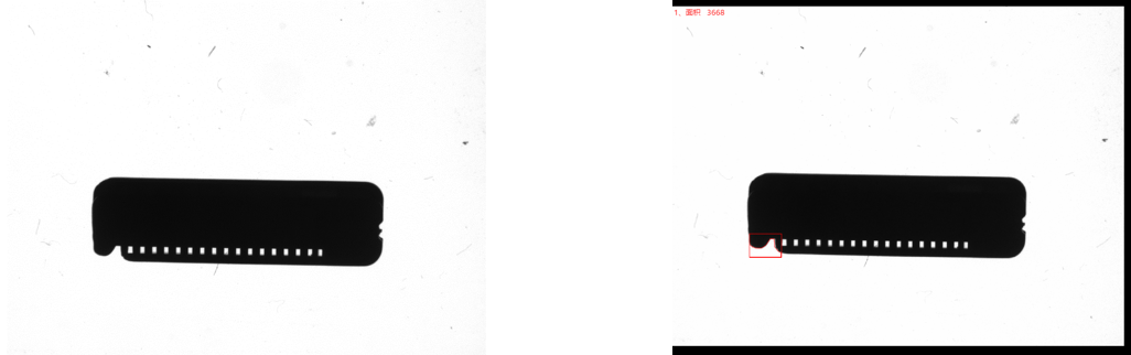 相機(jī)1、2頂部背光檢測不良品分析圖:NG 結(jié)論:可檢 檢測特征:缺料