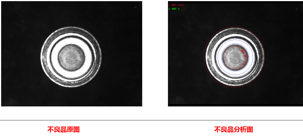 相機(jī)2頂部正光檢測(cè)良品分析圖:NG 結(jié)論:可檢 檢測(cè)特征:點(diǎn)膠氣泡