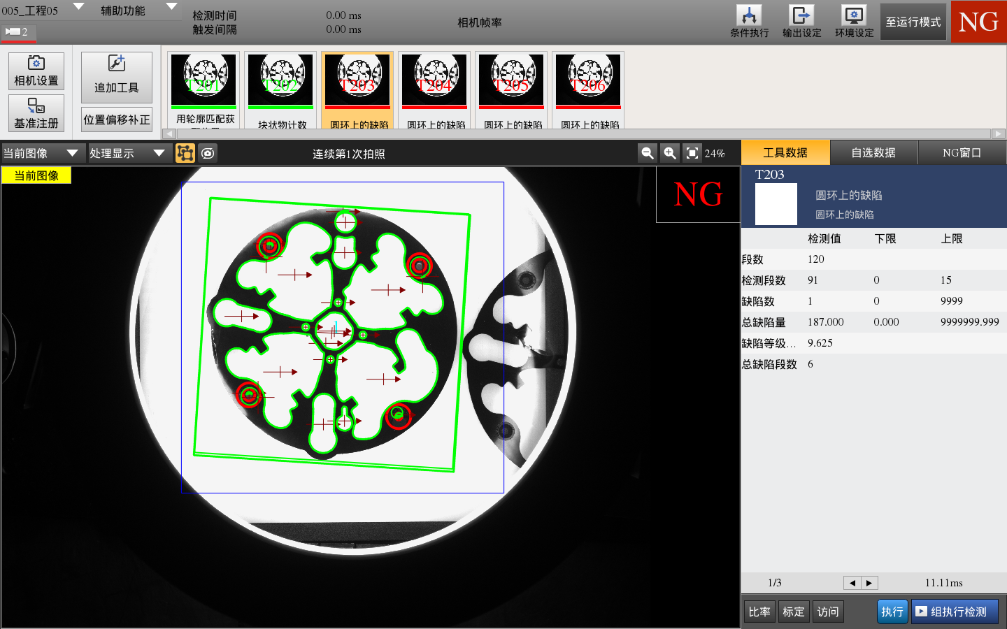 1.正光檢測不良品分析圖:NG 不良特征:偏移