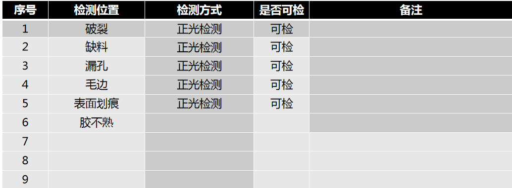 注明:以上檢測項目,均需要在影像下清晰可見才能檢測