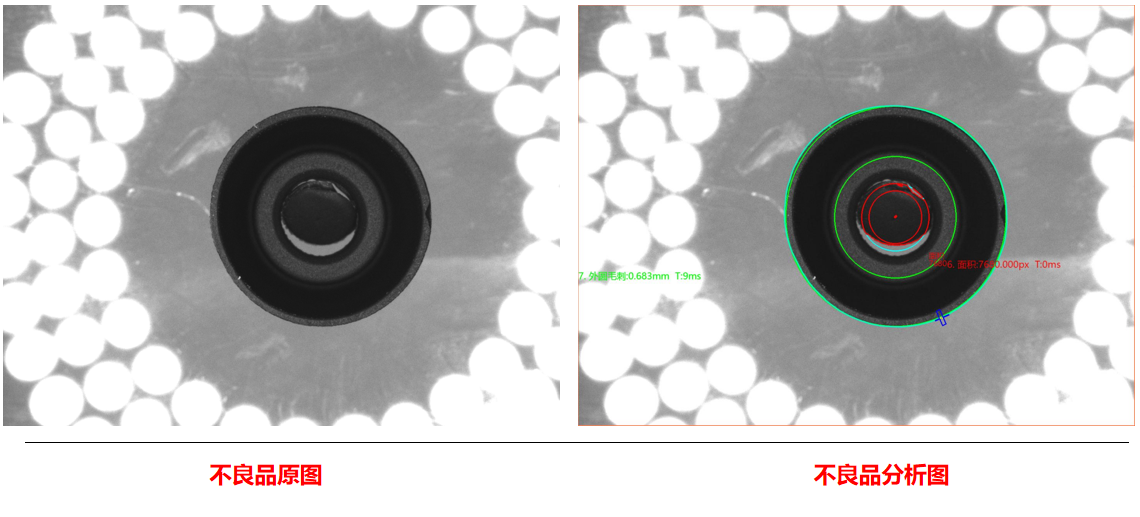 相機1:頂部正光檢測不良品分析圖:NG 不良特征:毛邊