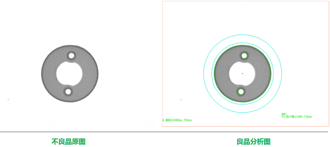 相機1:頂部正光檢測不良品分析圖:NG 不良特征:漏孔