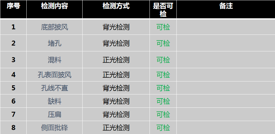 相機(jī)1、2頂部背光檢測不良品分析圖:NG 結(jié)論:可檢 檢測特征:孔表面批鋒