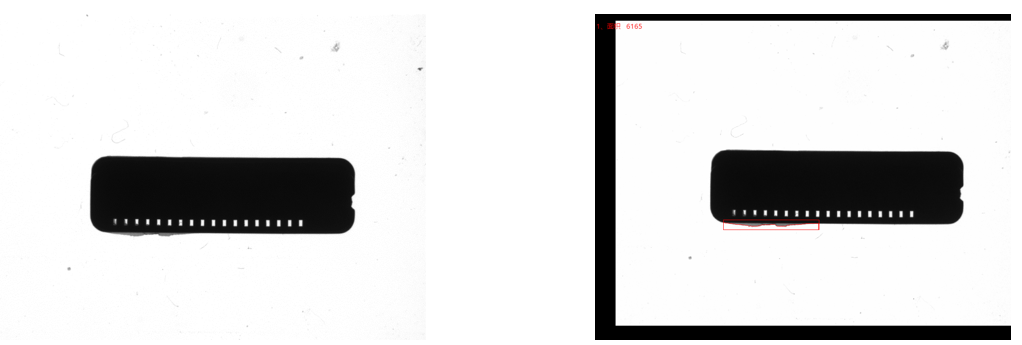 相機(jī)1、2頂部背光檢測不良品分析圖:NG 結(jié)論:可檢 檢測特征:缺料